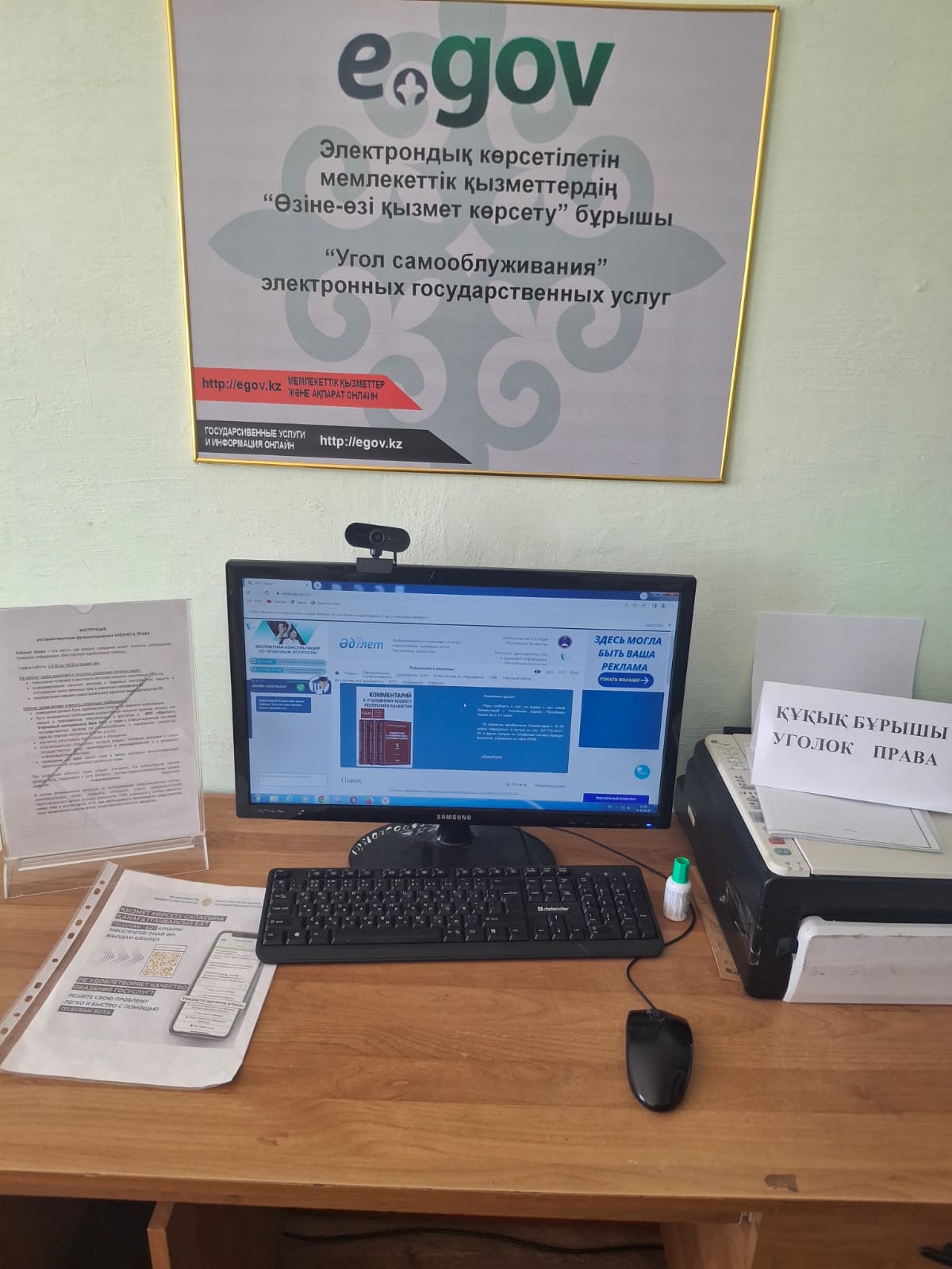 «Құқық кабинеттерінің» «өзіне-өзі қызмет көрсету бұрыштары» халыққа құқықтық және ақпараттық-түсіндіру көмегін көрсету үшін қажетті жарамды компьютерлік және ұйымдастыру техникасымен жабдықталған.