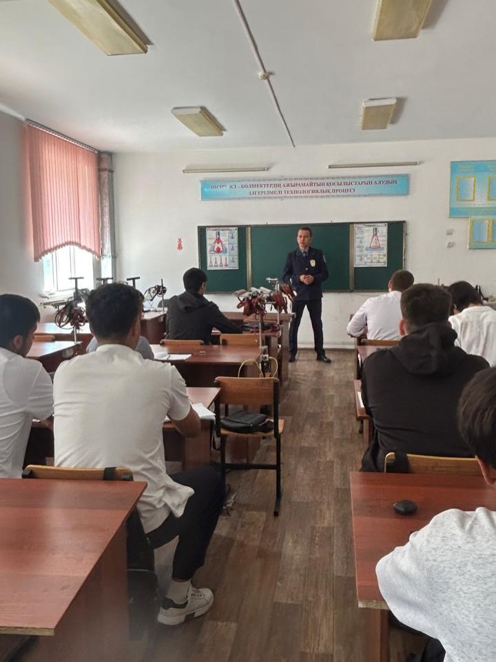 Жамбыл облысы Әділет департаментінің «Тараз қаласының мәжбүрлеп орындату аумактық» бөлімінің сот орындаушы А. Тоқтаевтың қатысуымен 28.04.2026 жылы Жамбыл облысы әкімігініғ білім басқармасының «Жамбыл индустриалды-технологиялық колледжі» МКҚК студенттерімен “Жас-өспірімдердің құқықтық сауаттылығы мен мәдениетін қалыптастыру, «Заң және тәртіп» қағидаларын ілгерілету мақсатында кездесу өткізілді.
