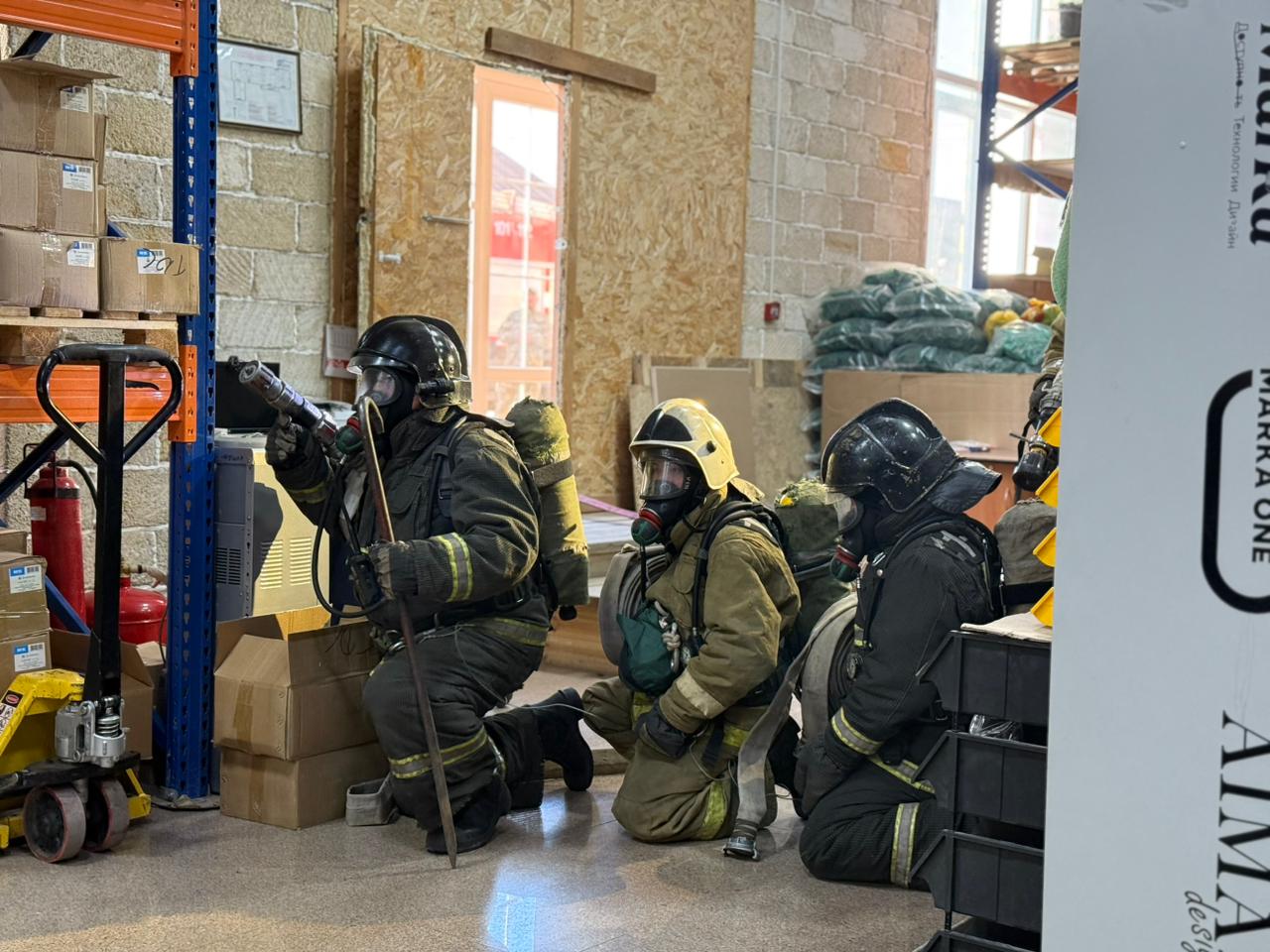 Жаттығу сценарийі бойынша өрт қойма ішінде туындап, құрылыс материалдары жанған . Жалын 130 шаршы метр аумаққа таралып, қатты түтіндену орын алды . Нысан қызметкерлері эвакуацияланды, алайда бір адам ғимарат ішінде қалып қойды .