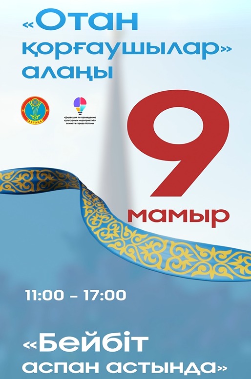 Мерекелік жиын 9 мамыр күні сағат 11:00-де «Жастар» саябағында (Отан қорғаушылар алаңы, Тәуелсіздік даңғылы мен Қажымұқан көшесінің қиылысында) басталады.