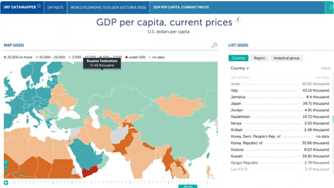 Халықаралық валюта қорының мәліметінше, 2025 жылы Қазақстандағы жан басына шаққандағы ЖІӨ 14 770 долларды құрады. Салыстырмалы түрде, Ресейде бұл көрсеткіш 14 260 доллар, ал Қытайда 13 690 доллар болды.