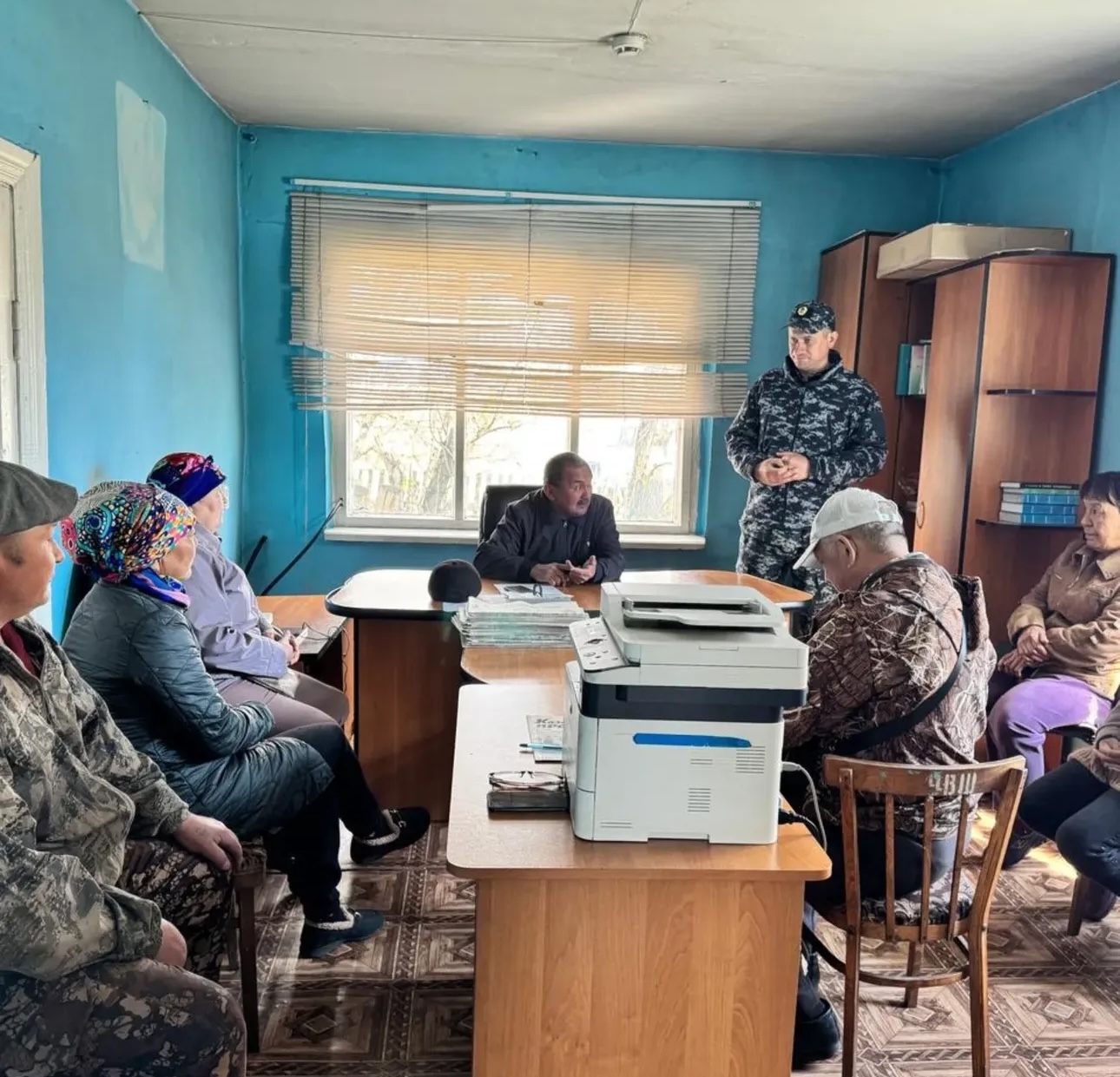 М.М. Нуржанов учаскелік полиция инспекторы полиция майоры Д.В. Несинмен бірлесіп азаматтар жиынын өткізді.